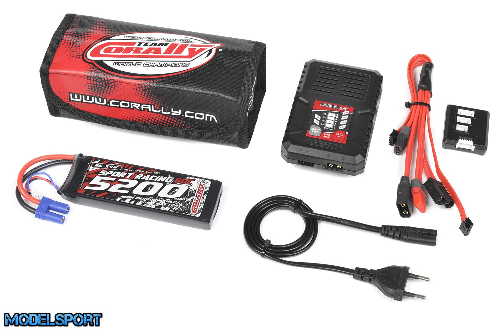 Team Corally - Energy Pack - Lipo 60C - 5200MAH - 2S - EC-5 - Semi-Soft Case + Racer 50 - 2-4S AC Charger + Lipo Safety Bag + Charge-Balance Lead