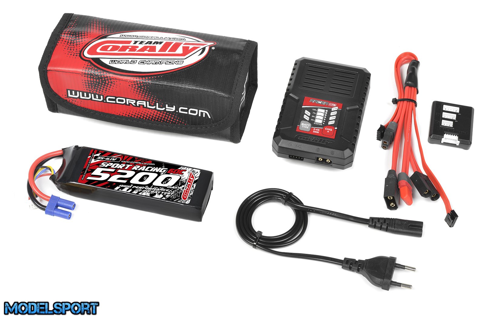 Team Corally - Energy Pack - Lipo 60C - 5200MAH - 3S - EC-5 - Semi-Soft Case + Racer 50 - 2-4S AC Charger + Lipo Safety Bag + Charge-Balance Lead
