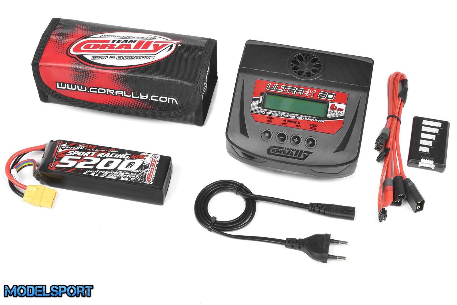 Team Corally - Energy Pack - Lipo 60C - 5200MAH - 4S - XT-90 - Semi-Soft Case + Ultra-X 80 - 1-6S AC/DC Charger + Lipo Safety Bag + Charge-Balance Lead