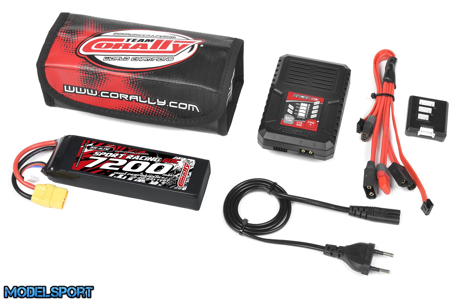 Team Corally - Energy Pack - Lipo 60C - 7200Mah - 3S - XT-90 - Semi-Soft Case + Racer 50 - 2-4S AC Charger + Lipo Safety Bag + Charge-Balance Lead
