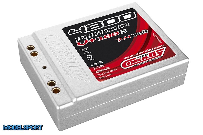 Team Corally - Platinum V+ 100C - 4800 mAh - 7,4V 2S - Competition Li-Po Battery Pack - Stick SQUARE Hardcase - Dual Gold Connector 4mm