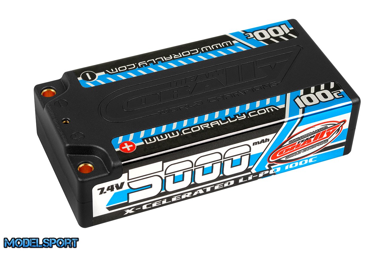 Team Corally - X-Celerated 100C LiPo Battery - 5000 mAh - 7.4V - Stick 2S - 4mm Bullit