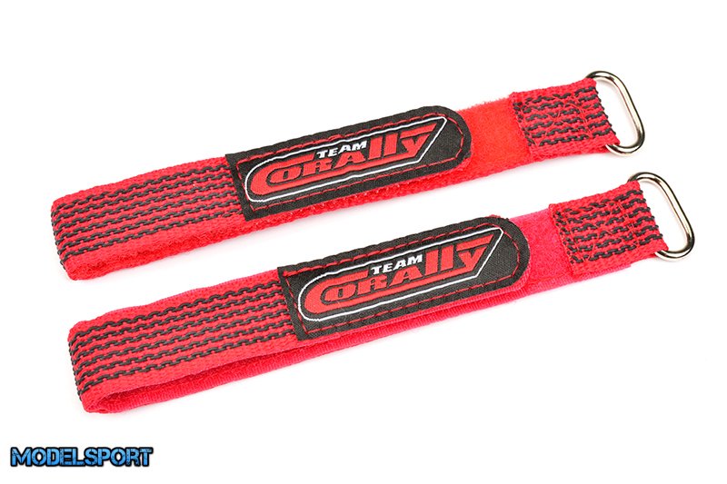 Team Corally - Pro Battery Straps - 250x20mm - Metal Buckle - Silicone Anti-Slip Strings - Red - 2 pcs