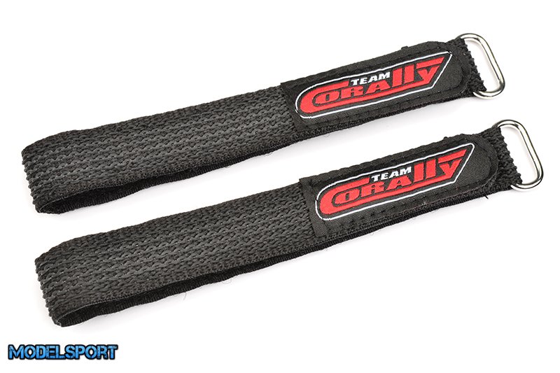Team Corally - Pro Battery Straps - 300x20mm - Metal Buckle - Silicone Anti-Slip Strings - Black - 2 pcs