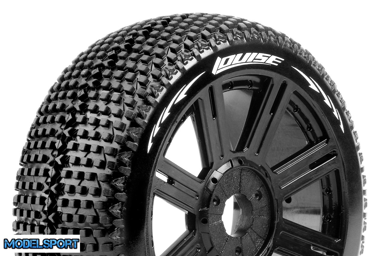 Louise RC - B-TURBO - 1-8 Buggy Tire Set - Mounted - Soft - Black Spoke Wheels - Hex 17mm - L-T3104SB