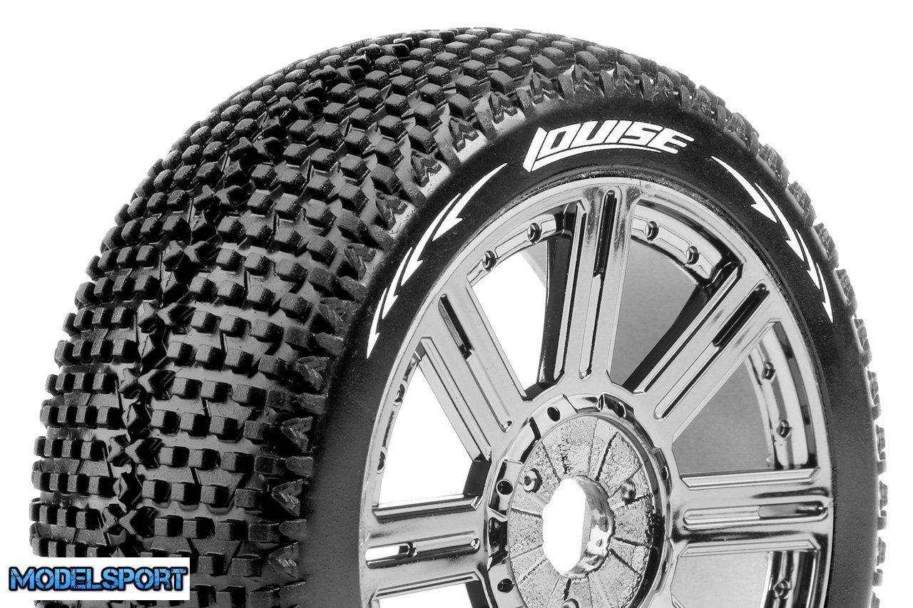 Louise RC - B-TURBO - 1-8 Buggy Tire Set - Mounted - Super Soft - Black-Chrome Spoke Wheels - Hex 17mm - L-T3104VBC