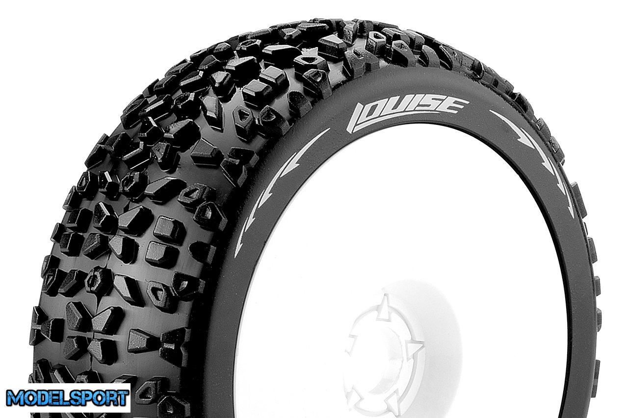 Louise RC - B-MAZINGER - 1-8 Buggy Tire Set - Mounted - Soft - White Wheels - Hex 17mm - L-T3108SW