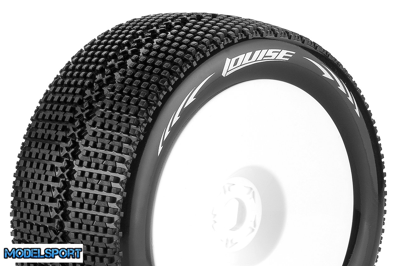 Louise RC - T-TURBO - 1-8 Truggy Tire Set - Mounted - Soft - White Wheels - 0-Offset - Hex 17mm - L-T3112SW