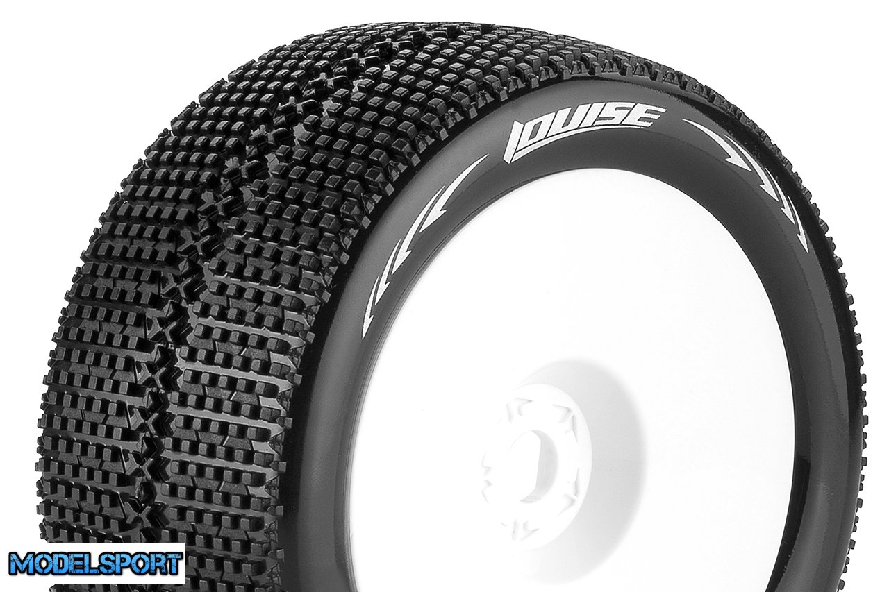 Louise RC - T-TURBO - 1-8 Truggy Tire Set - Mounted - Super Soft - White Wheels - 1/2"-Offset - Hex 17mm - L-T3112VWH