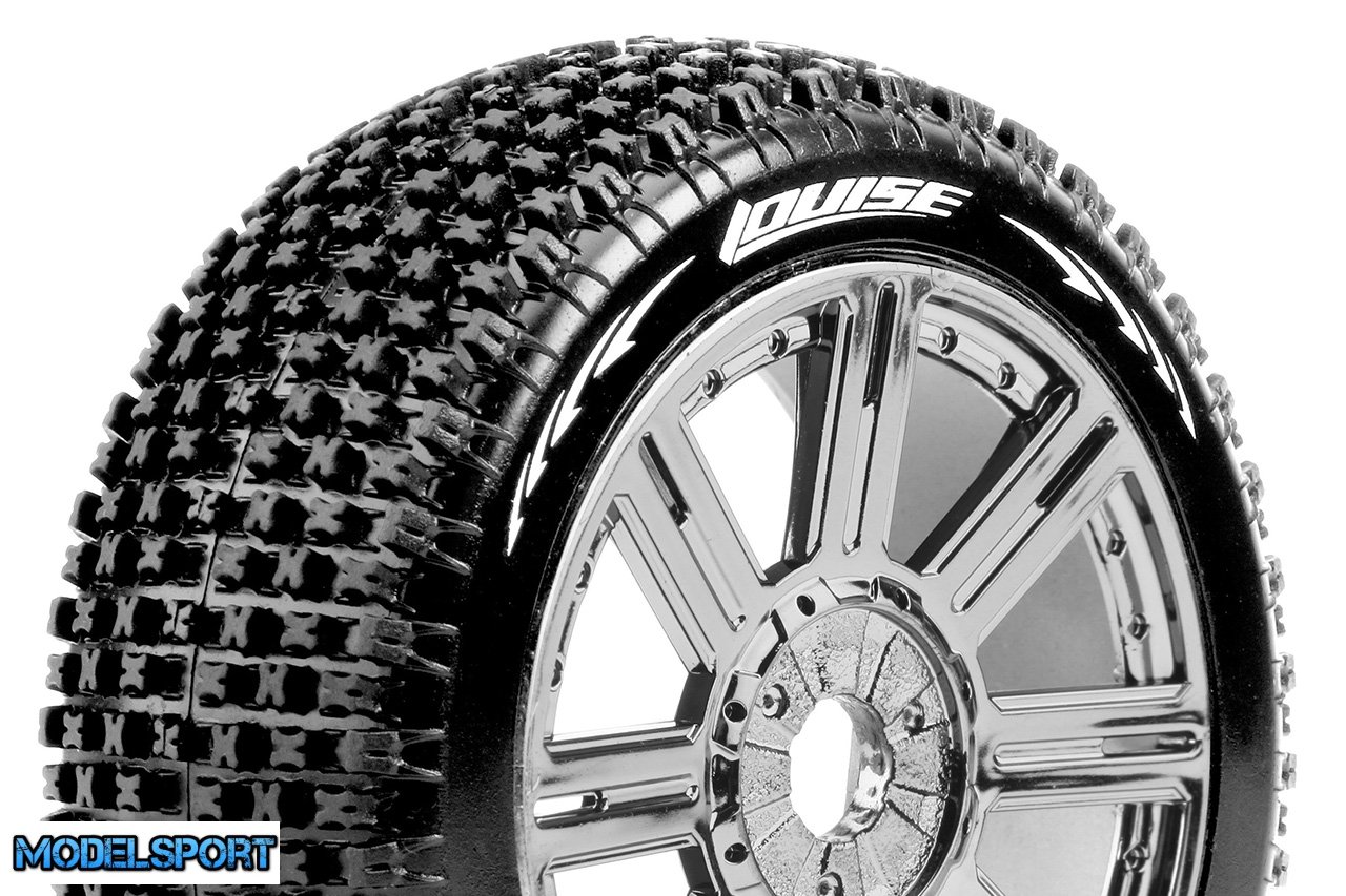 Louise RC - B-PIRATE - 1-8 Buggy Tire Set - Mounted - Soft - Black-Chrome Spoke Wheels - Hex 17mm - L-T3126SBC
