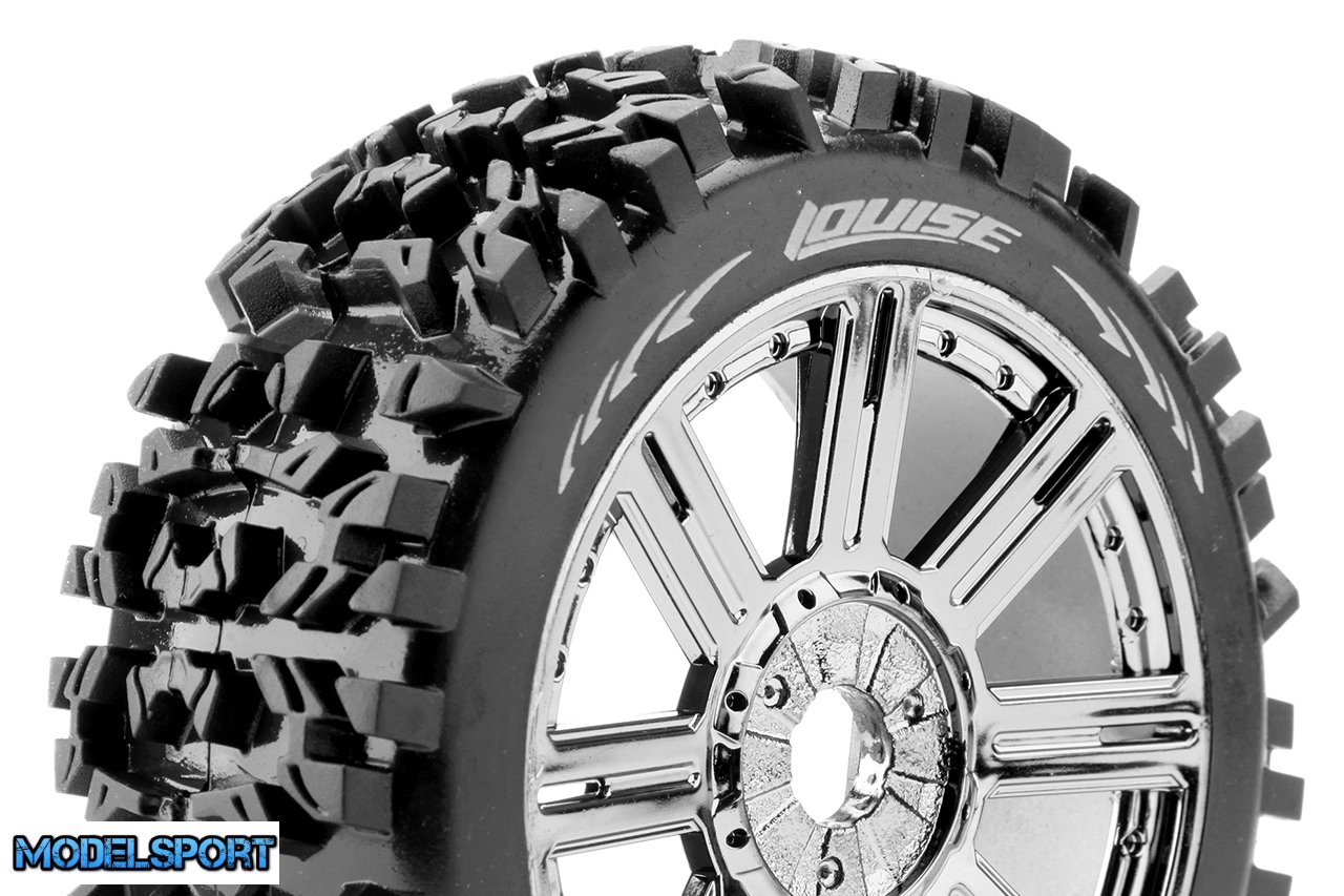 Louise RC - B-PIONEER - 1-8 Buggy Tire Set - Mounted - Soft - Black-Chrome Spoke Wheels - Hex 17mm - L-T3130SBC