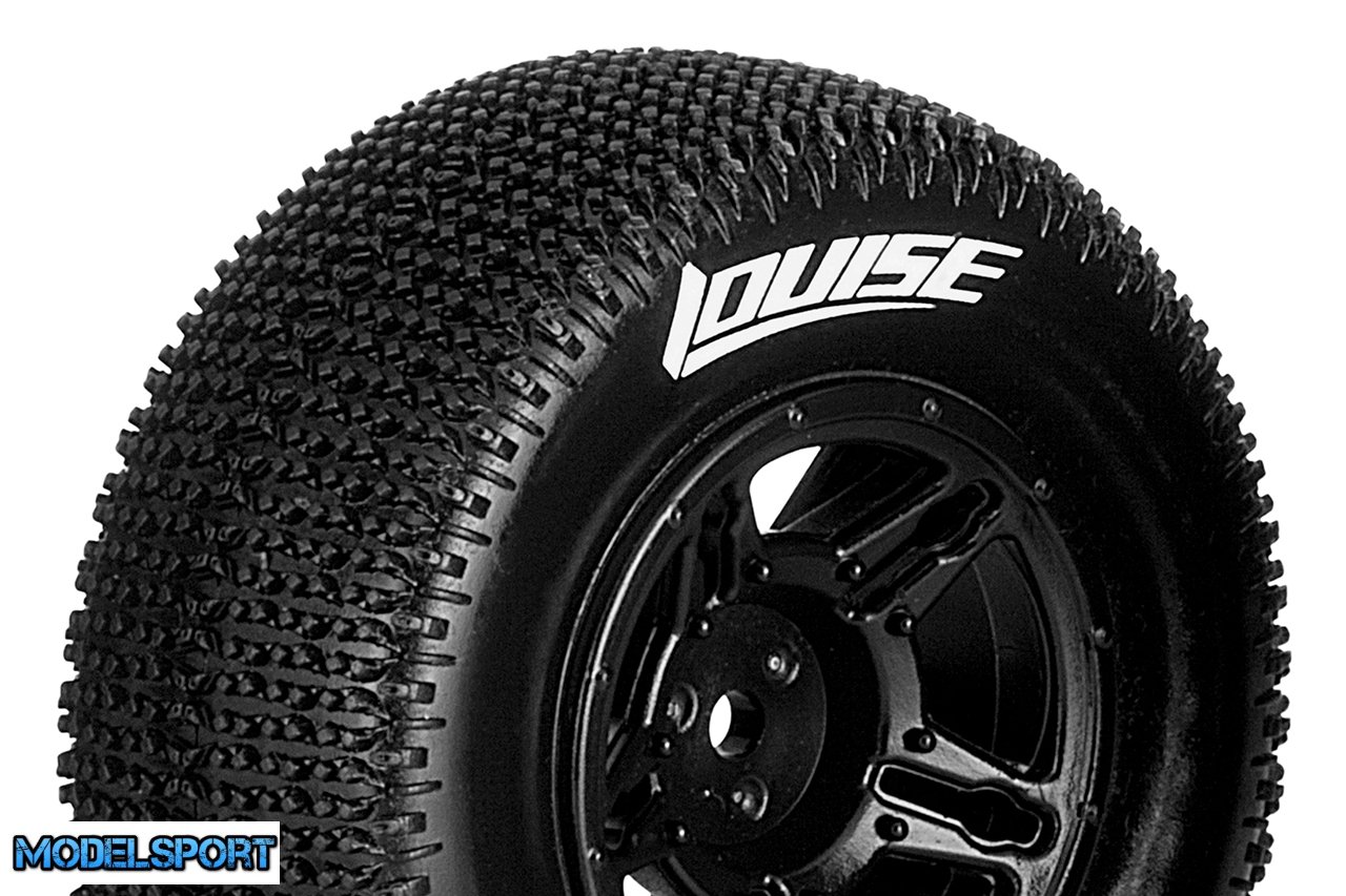 Louise RC - SC-MAGLEV - 1-10 Short Course Tire Set - Mounted - Super Soft - Black Wheels - Hex 12mm - SLASH 2WD Rear - SLASH 4X4 F/R - L-T3145VBTR