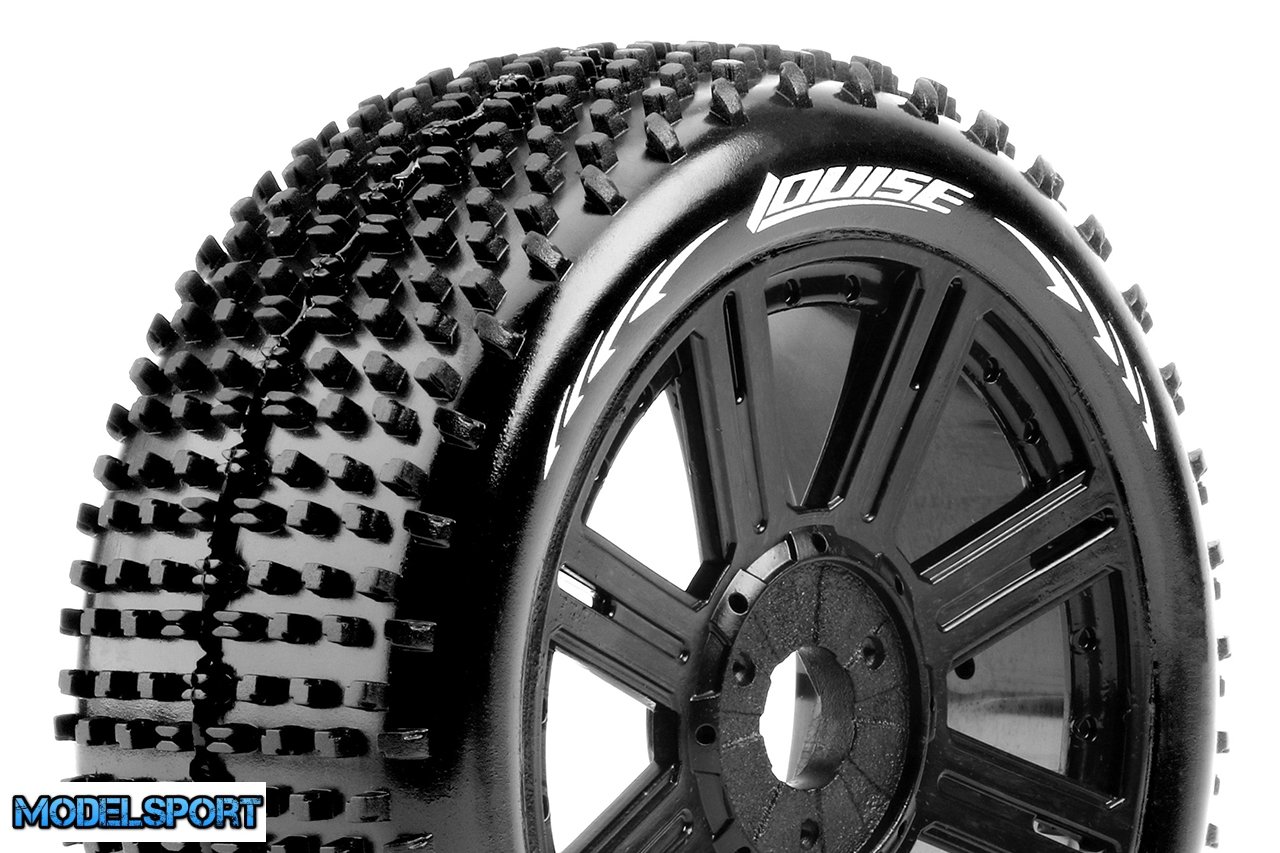 Louise RC - B-HORNET - 1-8 Buggy Tire Set - Mounted - Soft - Black Spoke Wheels - Hex 17mm - L-T3150SB