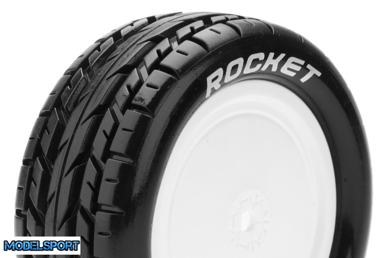Louise RC - E-ROCKET - 1-10 Buggy Tire Set - Mounted - Soft - White Wheels - Hex 12mm - 4WD - Front - L-T3186SWKF