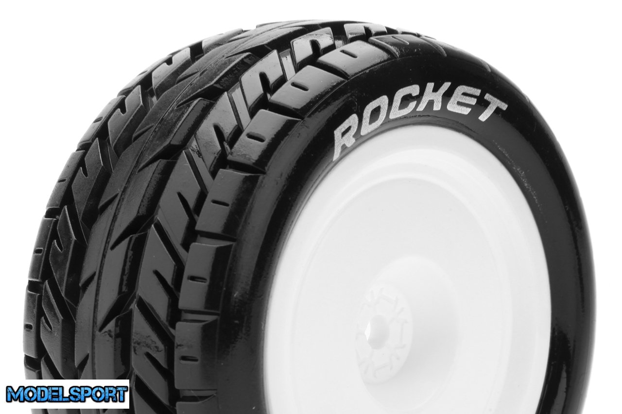 Louise RC - E-ROCKET - 1-10 Buggy Tire Set - Mounted - Soft - White Wheels - Hex 12mm - 4WD - Rear - L-T3188SWKR