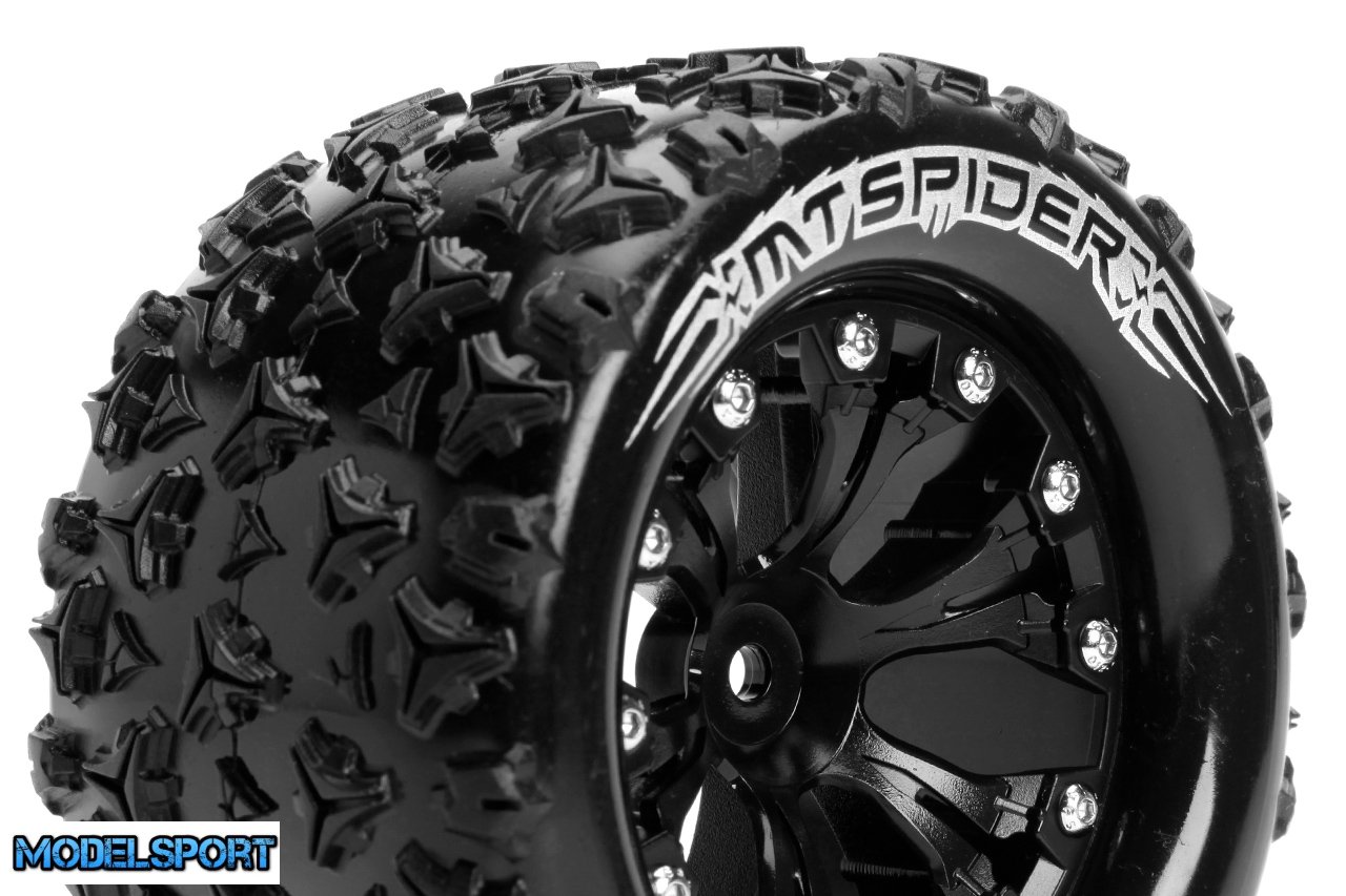 Louise RC - MT-SPIDER - 1-10 Monster Truck Tire Set - Mounted - Sport - Black 2.8 Wheels - 0-Offset - Hex 12mm - L-T3203SB