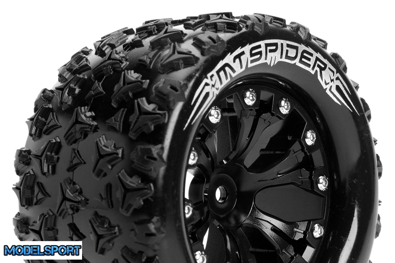 Louise RC - MT-SPIDER - 1-10 Monster Truck Tire Set - Mounted - Sport - Black 2.8 Wheels - 1/2-Offset - Hex 12mm - L-T3203SBH