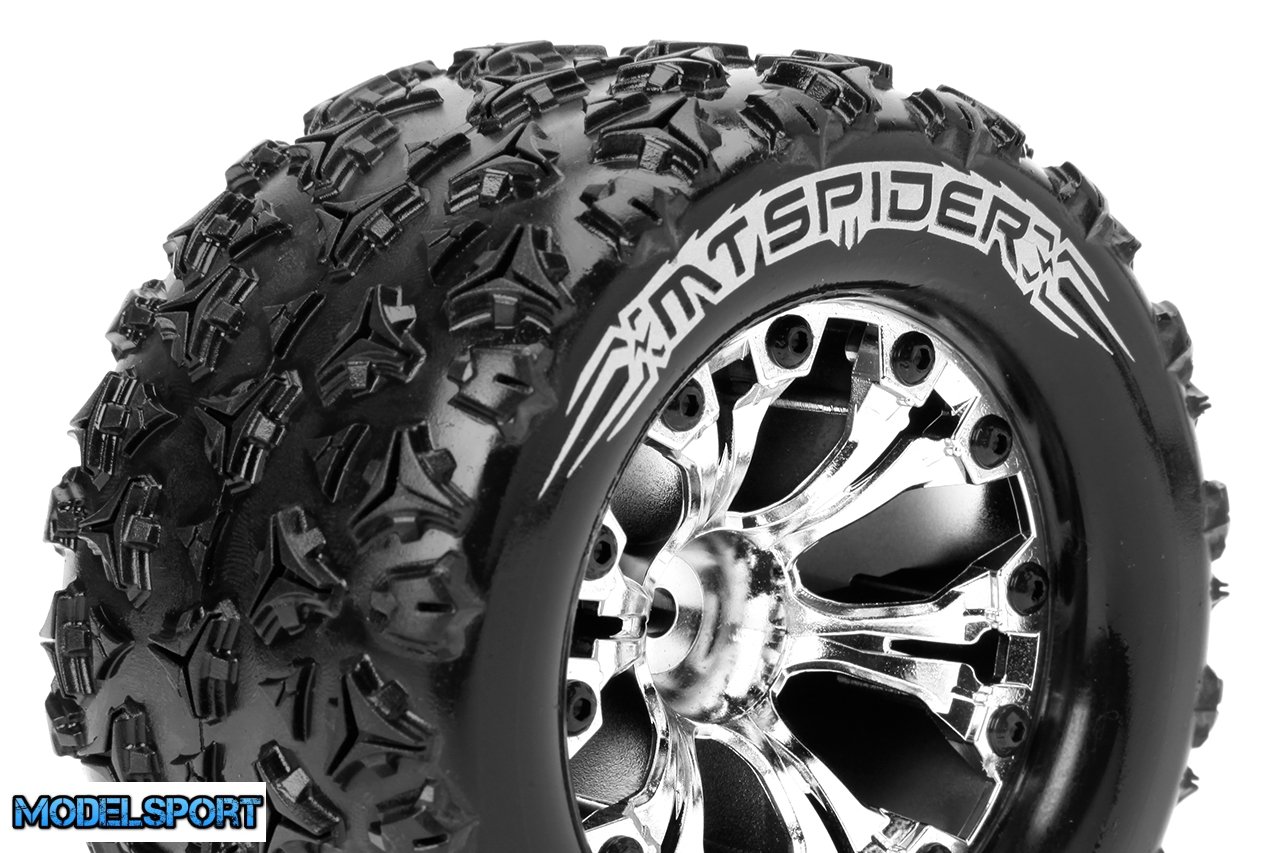 Louise RC - MT-SPIDER - 1-10 Monster Truck Tire Set - Mounted - Sport - Chrome 2.8 Wheels - 1/2-Offset - Hex 12mm - 1 pair - L-T3203SCH