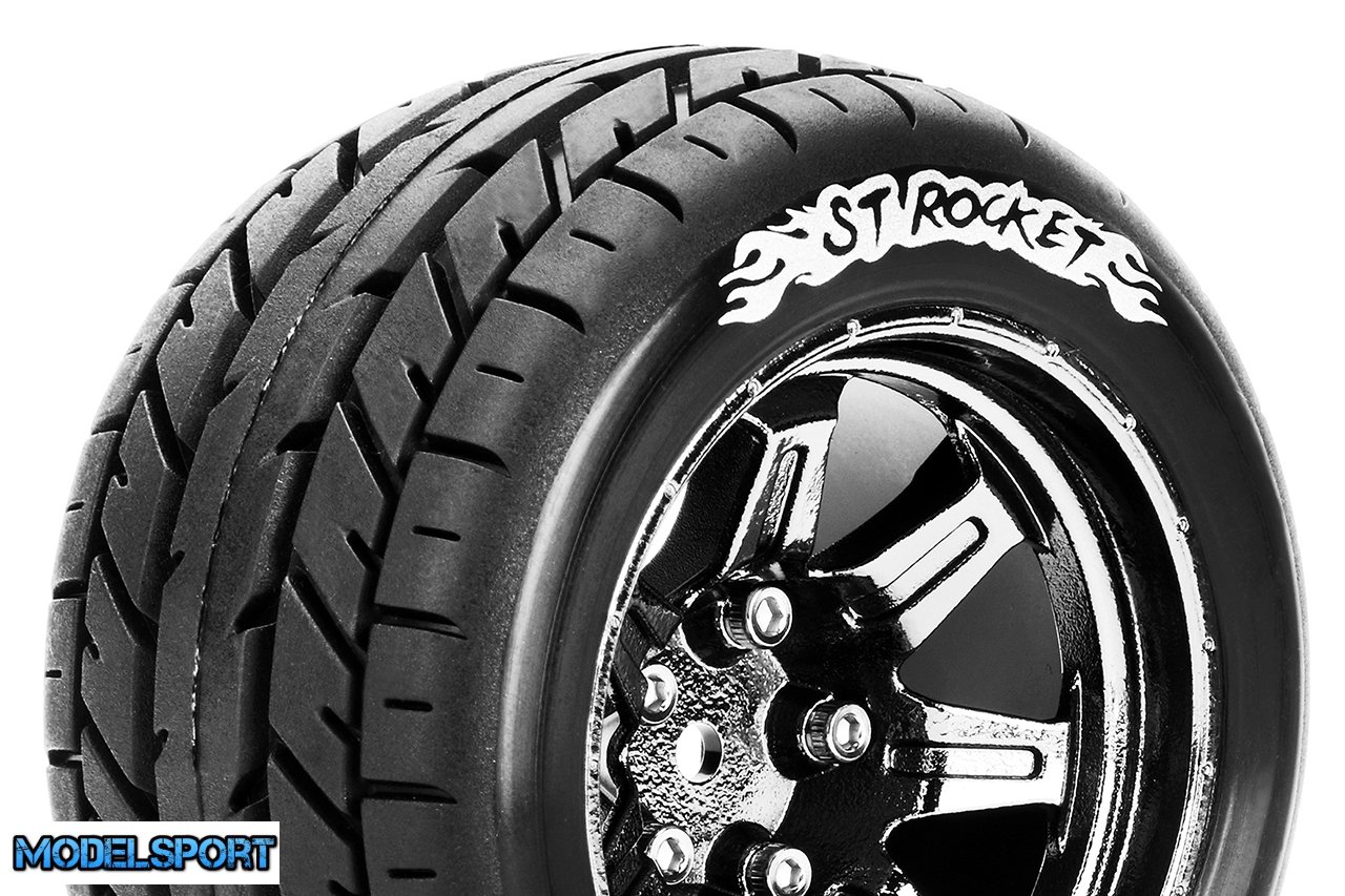 Louise RC - ST-ROCKET - 1-10 Stadium Truck Tire Set - Mounted - Sport - Black Chrome 2.8 Wheels - Hex 14mm - L-T3208SBCM
