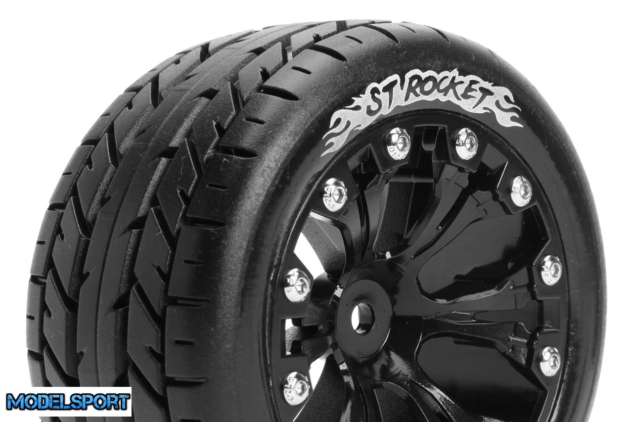 Louise RC - ST-ROCKET - 1-10 Stadium Truck Tire Set - Mounted - Sport - Black 2.8 Wheels - Hex 14mm - L-T3208SBM