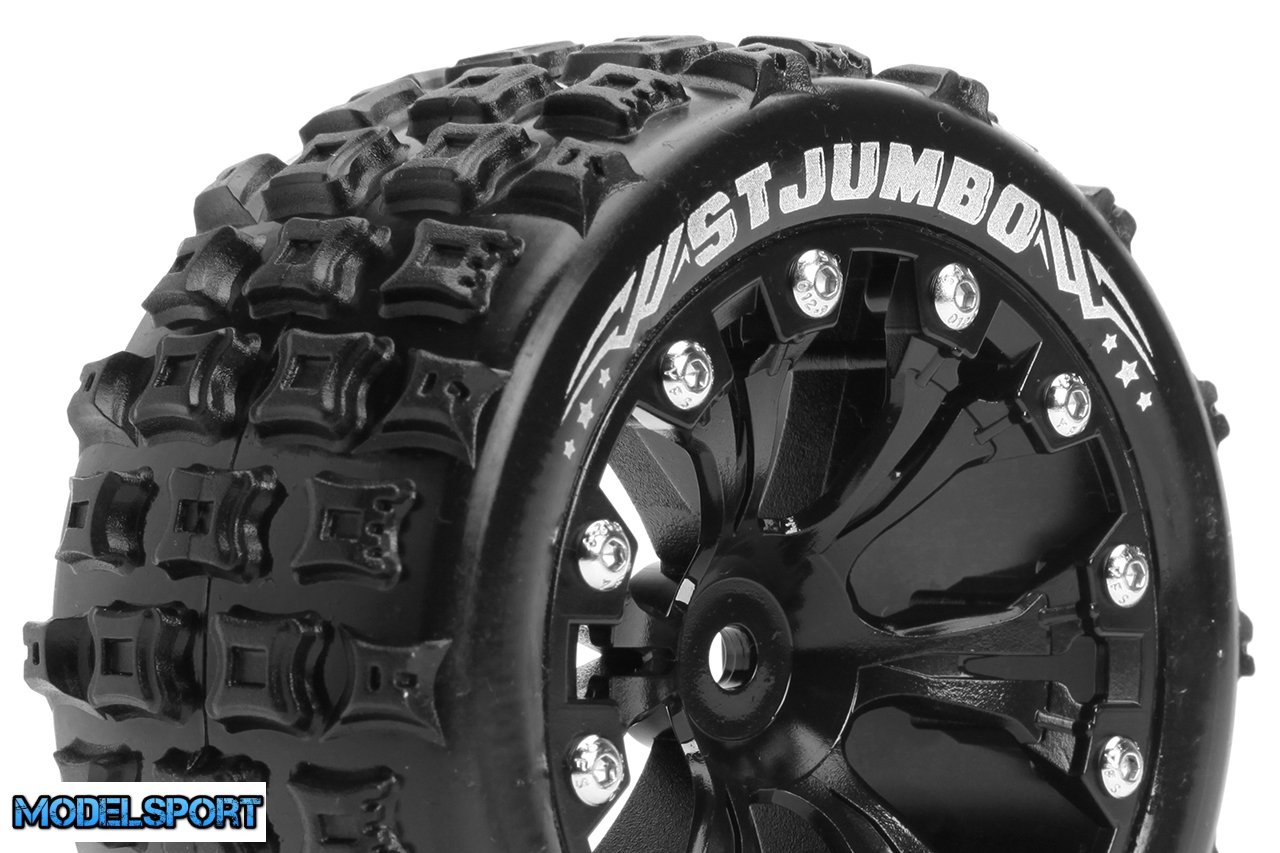 Louise RC - ST-JUMBO - 1-10 Stadium Truck Tire Set - Mounted - Sport - Black 2.8 Wheels - 0-Offset - Hex 12mm - L-T3210SB