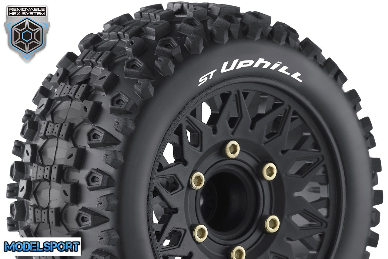 Louise RC - ST-UPHILL - 1-10 Stadium Truck Tire Set - Mounted - Sport - Black Wheels - Removable HEX 12 Narrow, 12 Wide, 14, 17mm - L-T3211SX