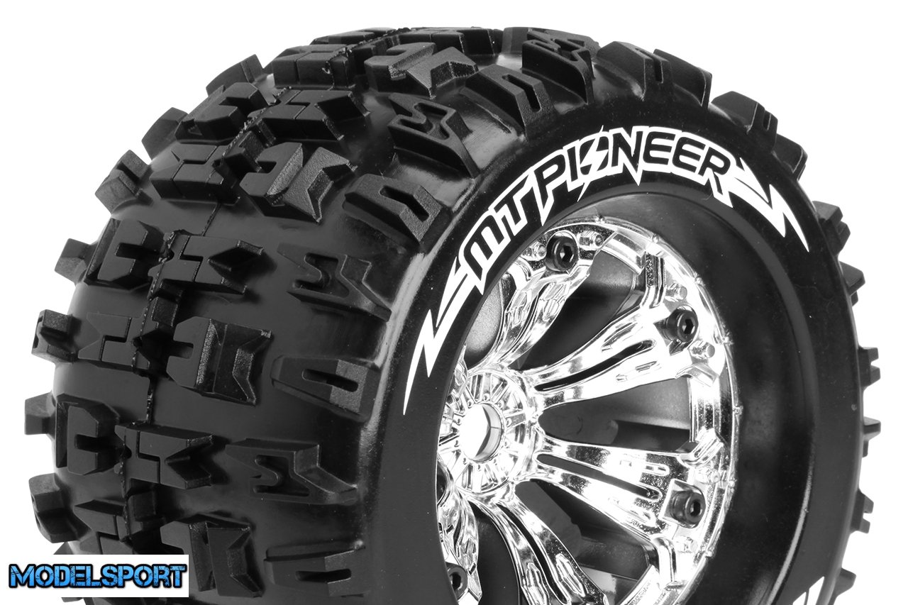 Louise RC - MT-PIONEER - 1-8 Monster Truck Tire Set - Mounted - Sport - Felgen 3.8 Chrom - 0-Offset - Hex 17mm - L-T3218C