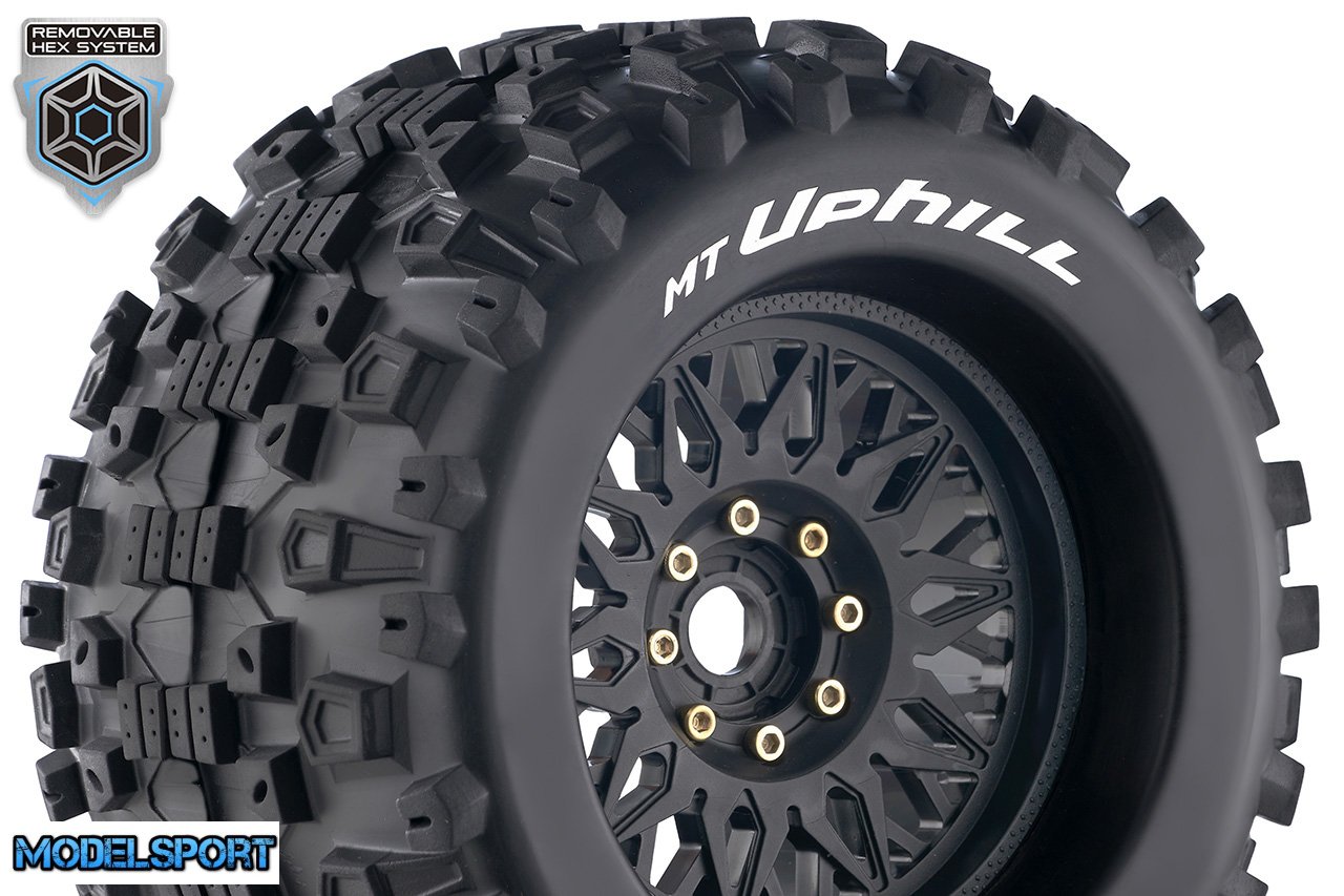 Louise RC - MT-UPHILL - 1-8 Monster Truck Tire Set - Mounted - Sport - Black Wheels - Removable 0" & 1/2" OFFSET HEX 17mm - L-T3219X