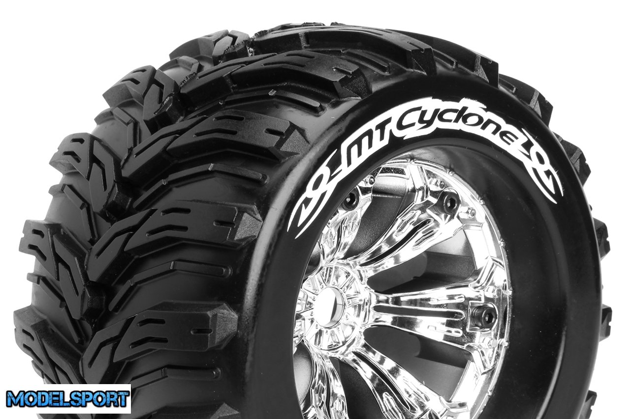 Louise RC - MT-CYCLONE - 1-8 Monster Truck Tire Set - Mounted - Sport - Felgen 3.8 Chrom - 0-Offset - Hex 17mm - L-T3220C