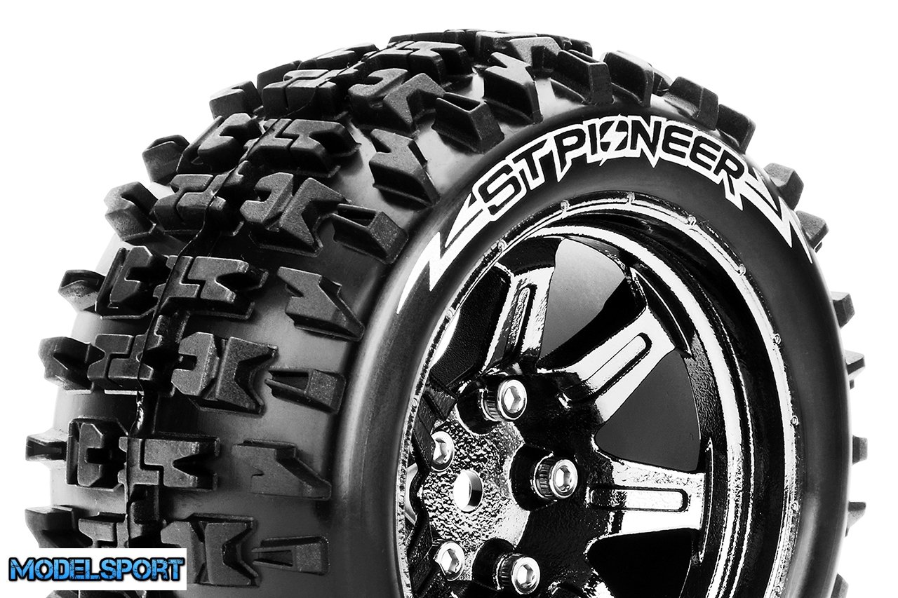 Louise RC - ST-PIONEER - 1-10 Stadium Truck Tire Set - Mounted - Soft - Black Chrome 2.8 Wheels - Hex 14mm - L-T3227SBCM