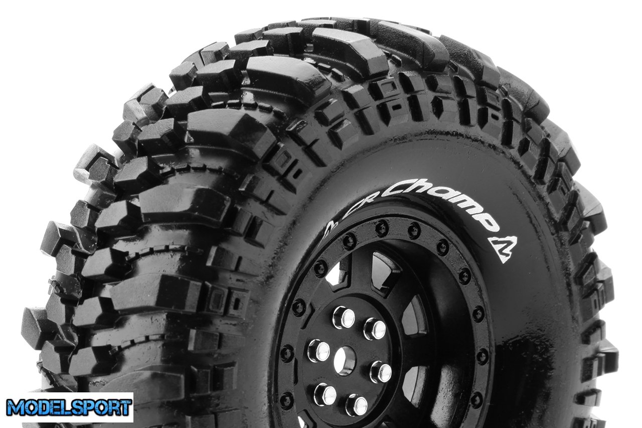 Louise RC - CR-CHAMP - 1-10 Crawler Tire Set - Mounted - Super Soft - Black 1.9 Wheels - Hex 12mm - L-T3231VB