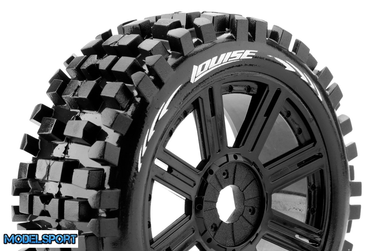 Louise RC - B-ULLDOZE - 1-8 Buggy Tire Set - Mounted - Soft - Black Spoke Wheels - Hex 17mm - L-T324SB