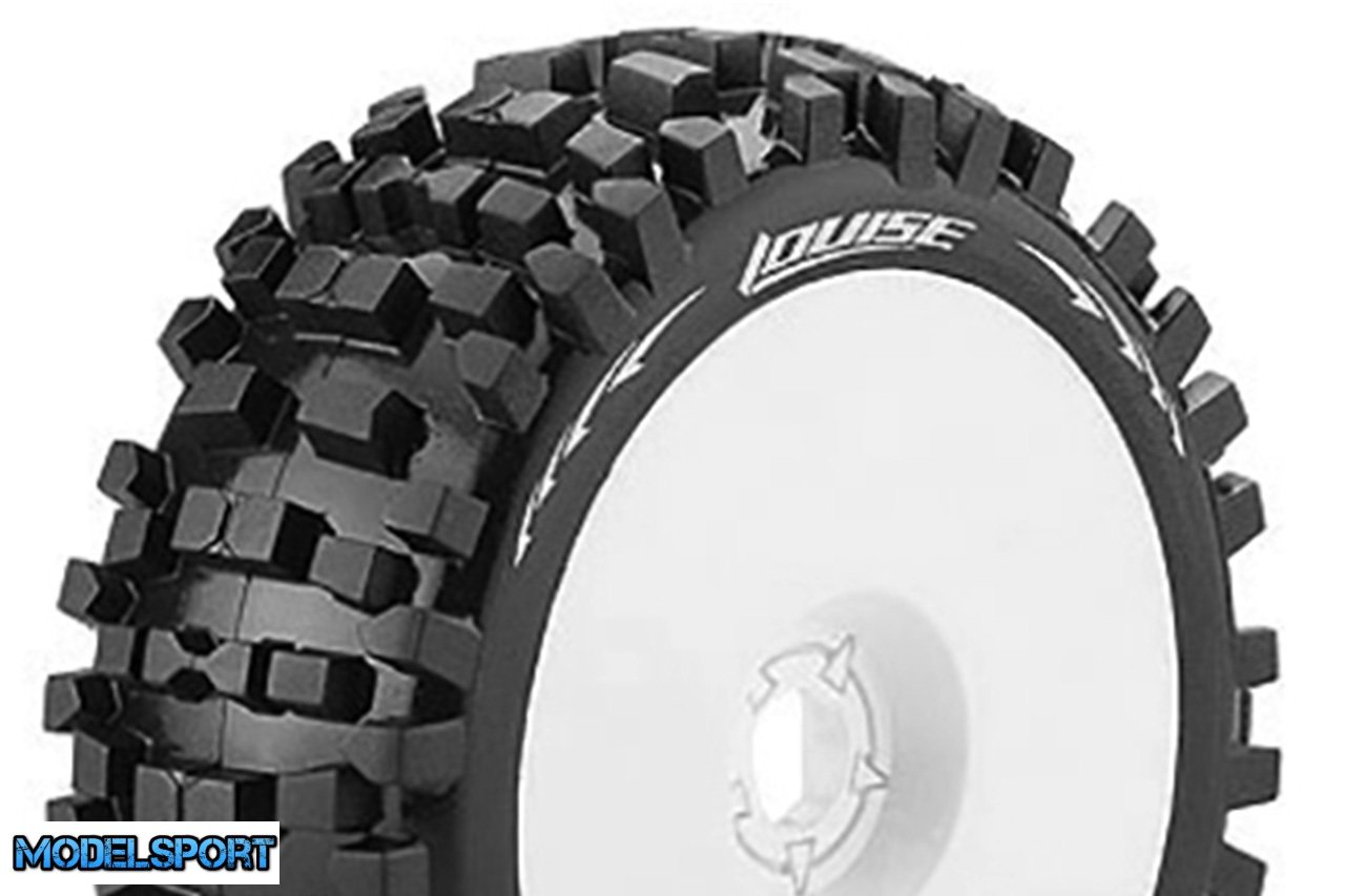 Louise RC - B-ULLDOZE - 1-8 Buggy Tire Set - Mounted - Soft - White Wheels - Hex 17mm - L-T324SW