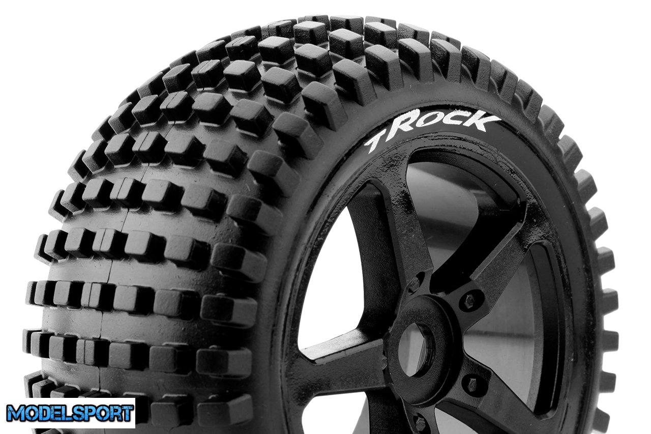 Louise RC - T-ROCK - 1-8 Truggy Tire Set - Mounted - Soft - Black Spoke Wheels - 0-Offset - Hex 17mm - L-T3251SB