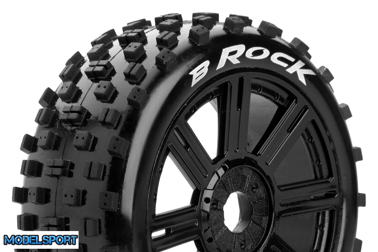 Louise RC - B-ROCK - 1-8 Buggy Tire Set - Mounted - Soft - Black Spoke Wheels - Hex 17mm - L-T3270SB