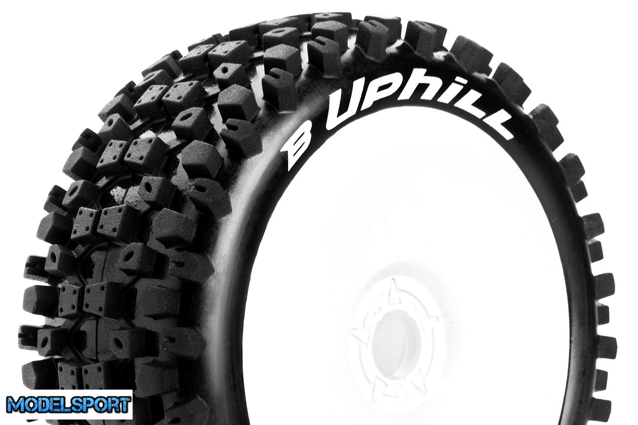 Louise RC - B-UPHILL - 1-8 Buggy Tire Set - Mounted - Soft - White Wheels - Hex 17mm - L-T3271SW