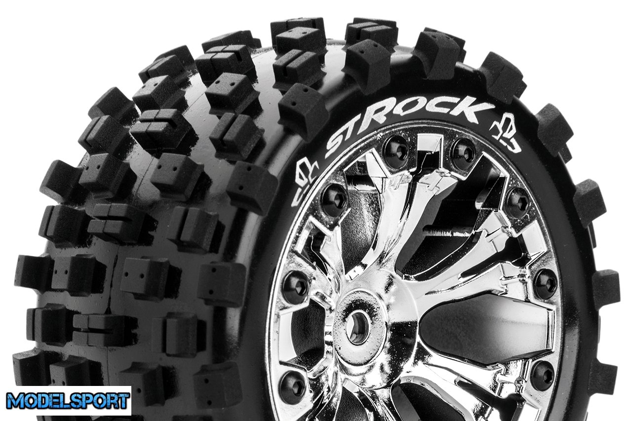 Louise RC - ST-ROCK - 1-10 Stadium Truck Tire Set - Mounted - Sport - Chrome 2.8 Wheels - 0-Offset - Hex 12mm - L-T3273SC