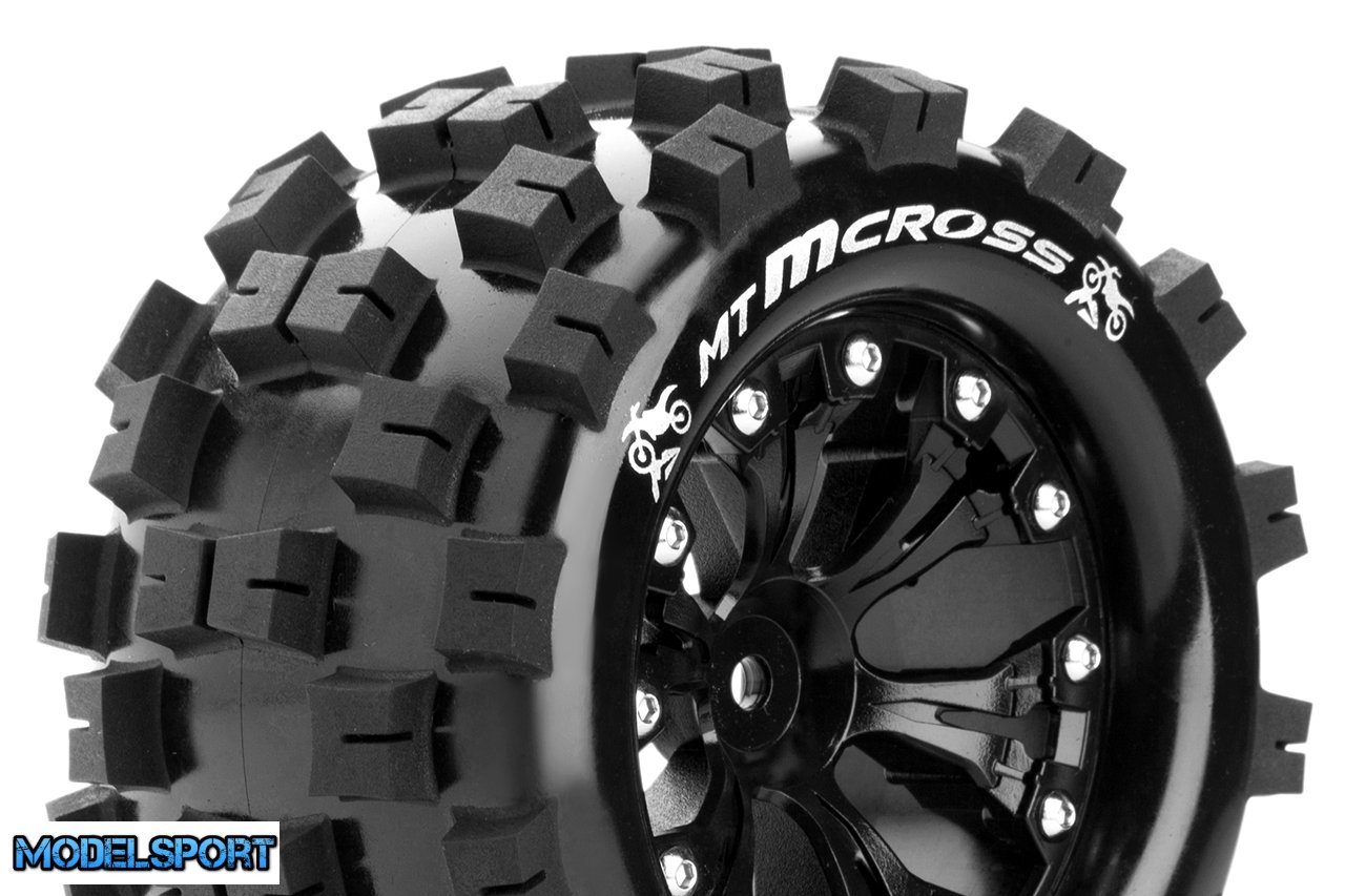 Louise RC - MT-MCROSS - 1-10 Monster Truck Tire Set - Mounted - Sport - Black 2.8 Wheels - 0-Offset - Hex 12mm - L-T3274SB