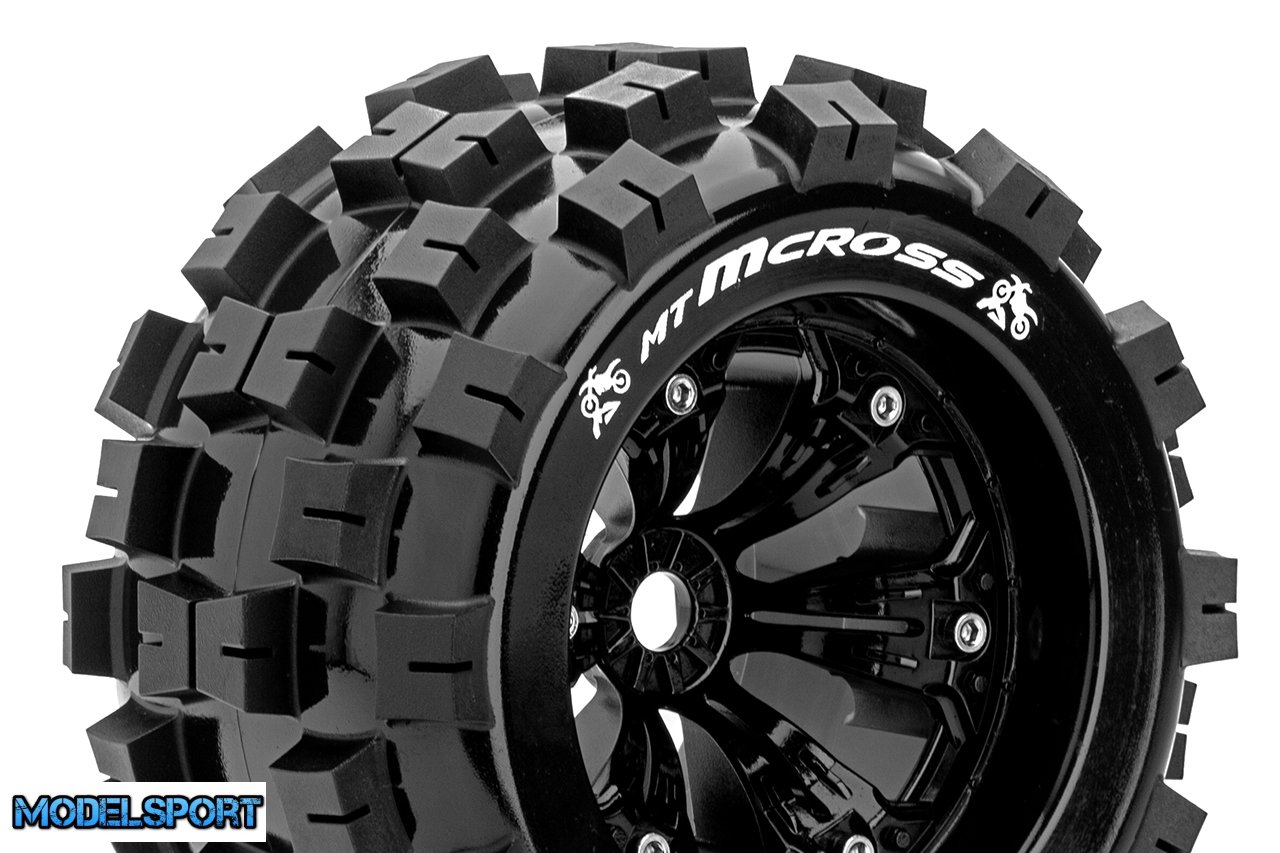 Louise RC - MT-MCROSS - 1-8 Monster Truck Tire Set - Mounted - Sport - Felgen 3.8 Schwarz - 0-Offset - Hex 17mm - L-T3276B