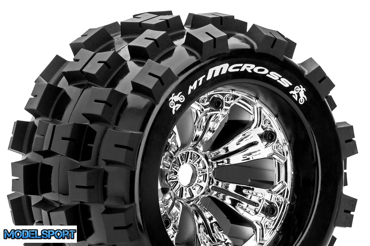 Louise RC - MT-MCROSS - 1-8 Monster Truck Tire Set - Mounted - Sport - Felgen 3.8 Chrom - 1/2-Offset - Hex 17mm - L-T3276CH