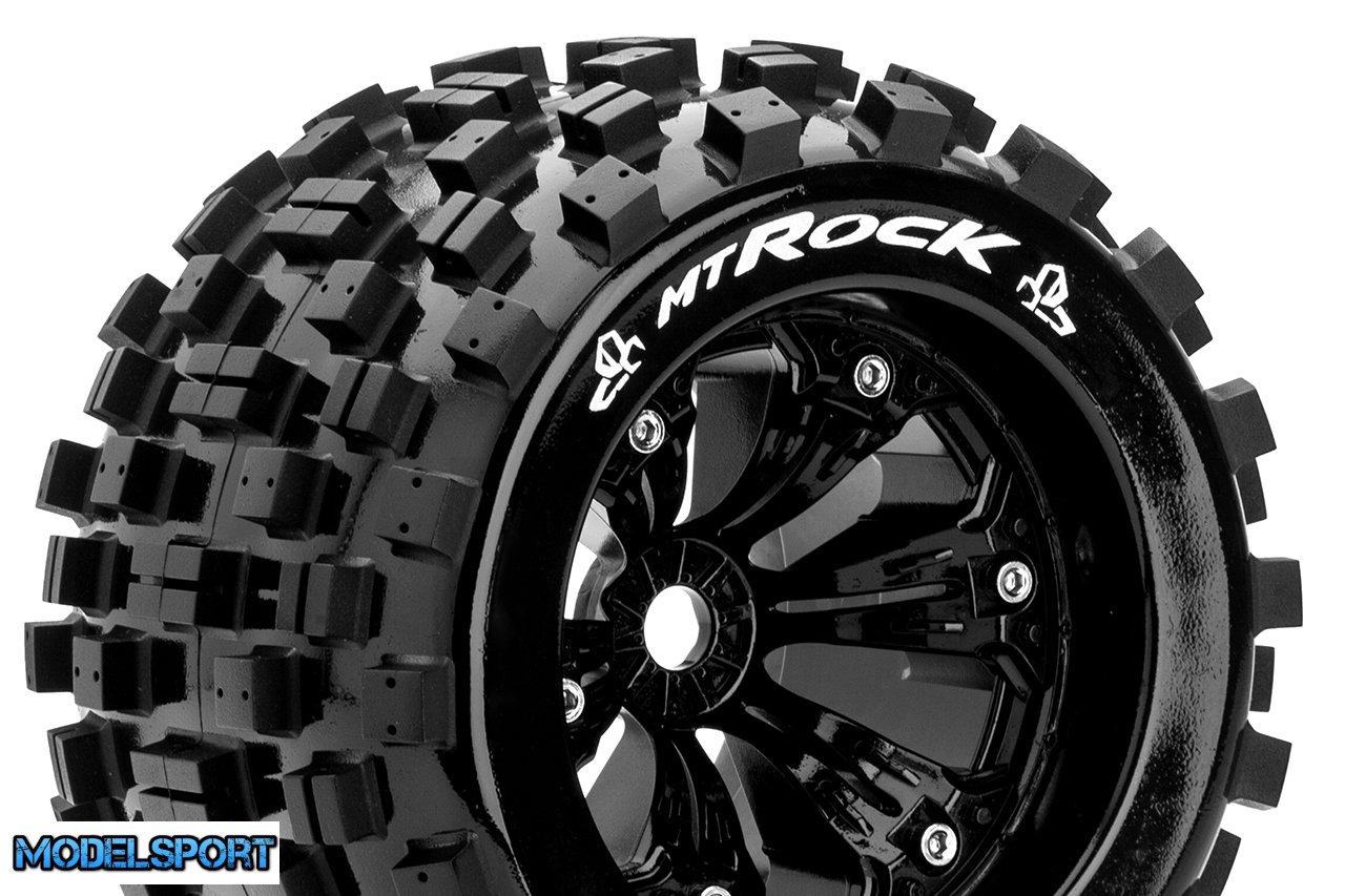 Louise RC - MT-ROCK - 1-8 Monster Truck Tire Set - Mounted - Sport - Felgen 3.8 Schwarz - 0-Offset - Hex 17mm - L-T3277B