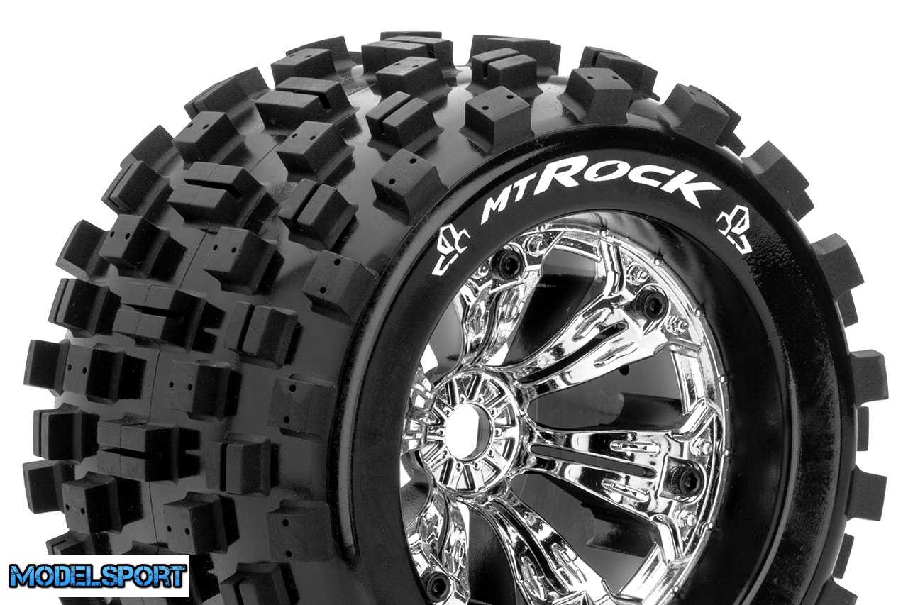 Louise RC - MT-ROCK - 1-8 Monster Truck Tire Set - Mounted - Sport - Felgen 3.8 Chrom - 1/2-Offset - Hex 17mm - L-T3277CH