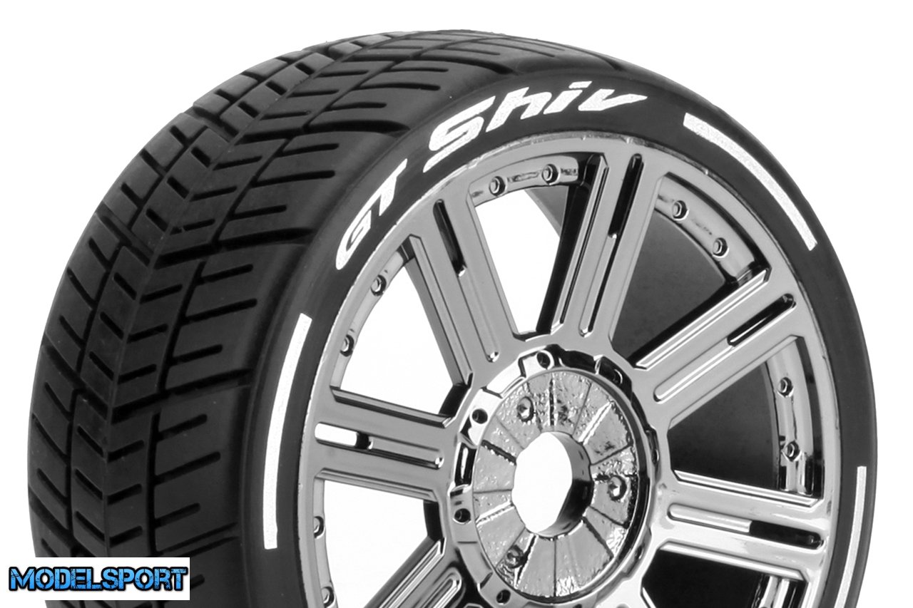 Louise RC - MFT - GT-SHIV - 1-8 Buggy Tire Set - Mounted - Soft - Black Chrome Spoke Wheels - Hex 17mm - L-T3284SBC