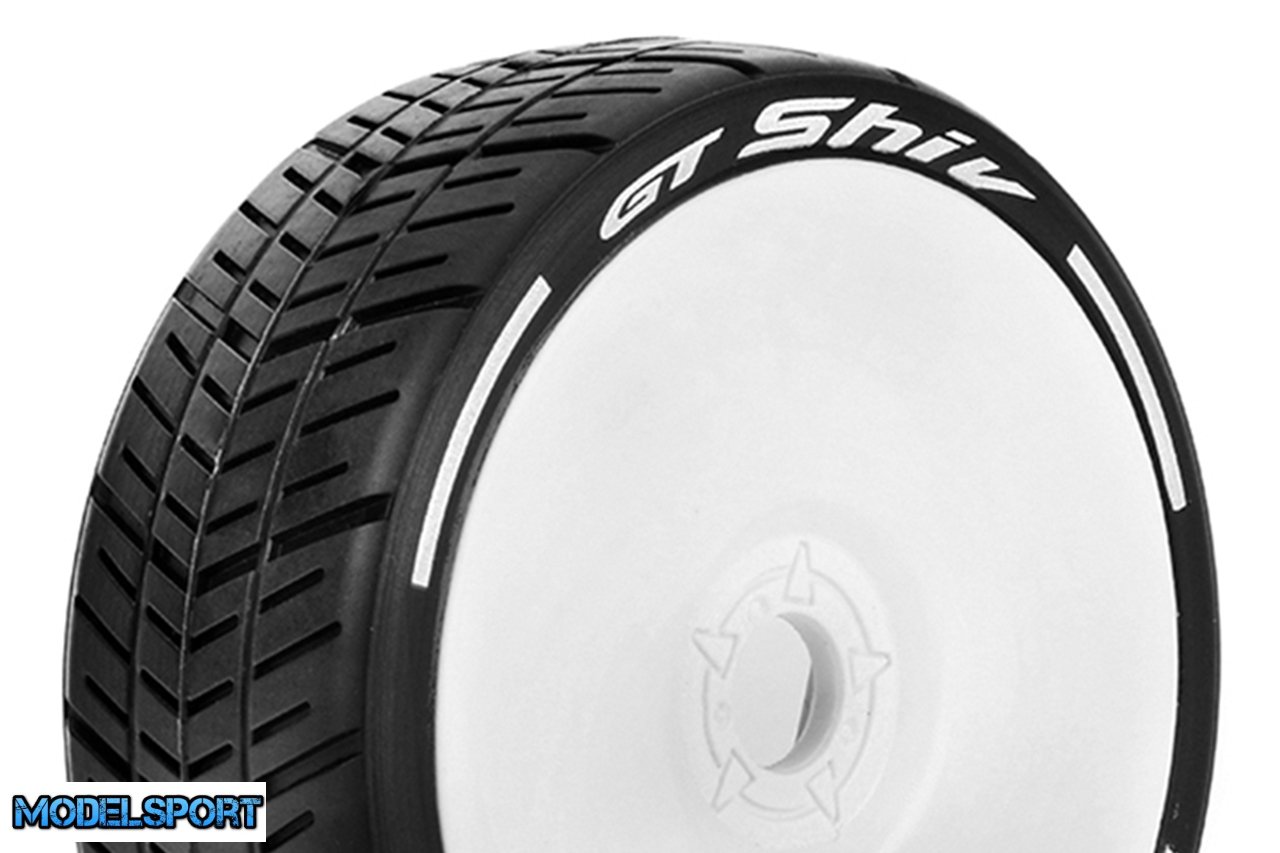 Louise RC - MFT - GT-SHIV - 1-8 Buggy Tire Set - Mounted - Soft - White Wheels - Hex 17mm - L-T3284SW