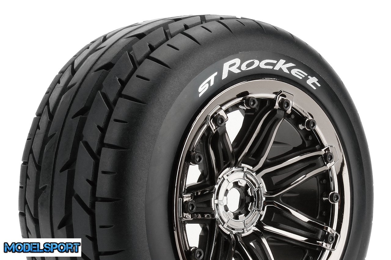 Louise RC - ST-ROCKET - 1-8 Stadium Truck Tire Set - Mounted - Sport - Black Chrome 3.8 Bead Style Wheels - Hex 17mm - L-T3286BC