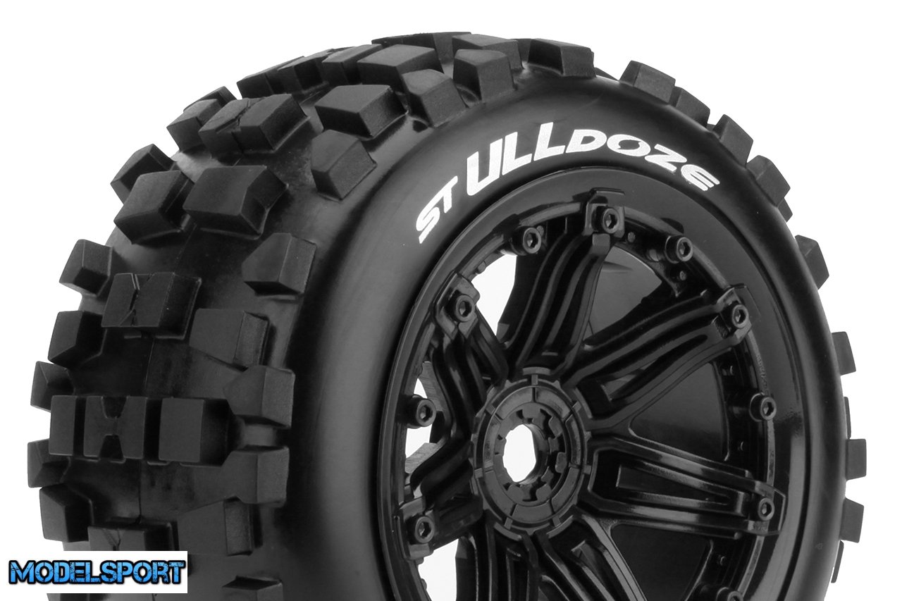 Louise RC - ST-ULLDOZE - 1-8 Stadium Truck Tire Set - Mounted - Sport - Black 3.8 Bead Style Wheels - Hex 17mm - L-T3288B