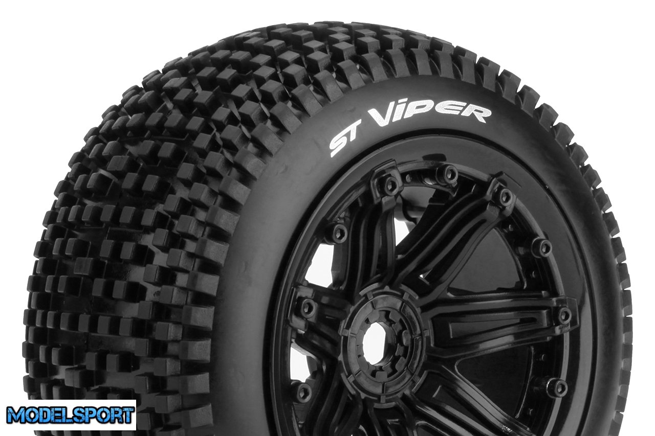 Louise RC - ST-VIPER - 1-8 Stadium Truck Tire Set - Mounted - Sport - Black 3.8 Bead Style Wheels - Hex 17mm - L-T3289B