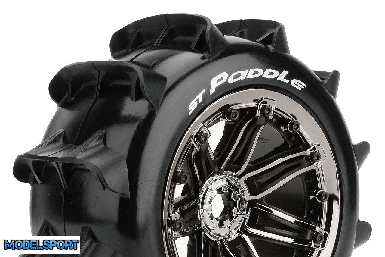 Louise RC - ST-PADDLE- 1-8 Stadium Truck Tire Set - Mounted - Sport - Black Chrome 3.8 Bead Style Wheels - Hex 17mm - L-T3290BC