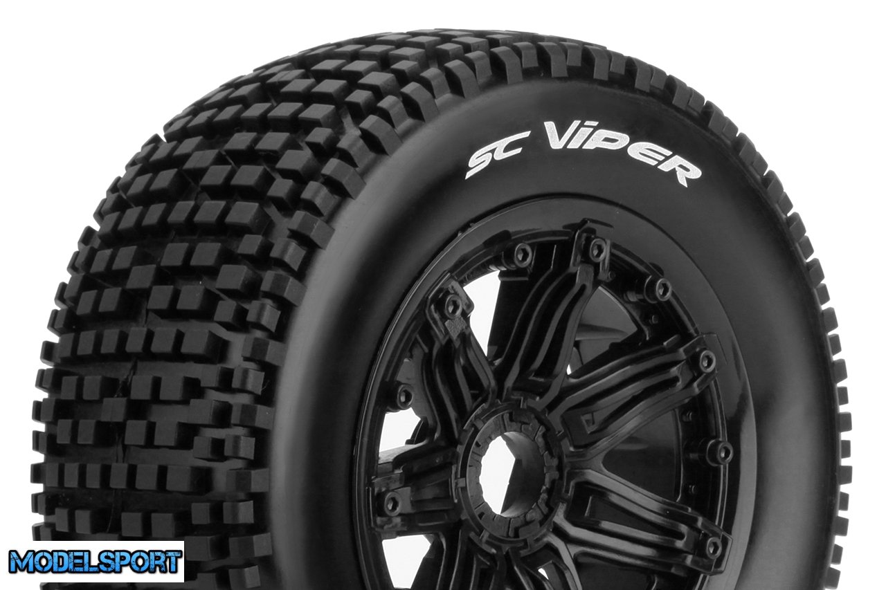 Louise RC - SC-VIPER - 1-5 Short Course Truck Tire Set - Mounted - Sport - Black Bead-Lock Wheels - Hex 24mm - Rear - L-T3294B