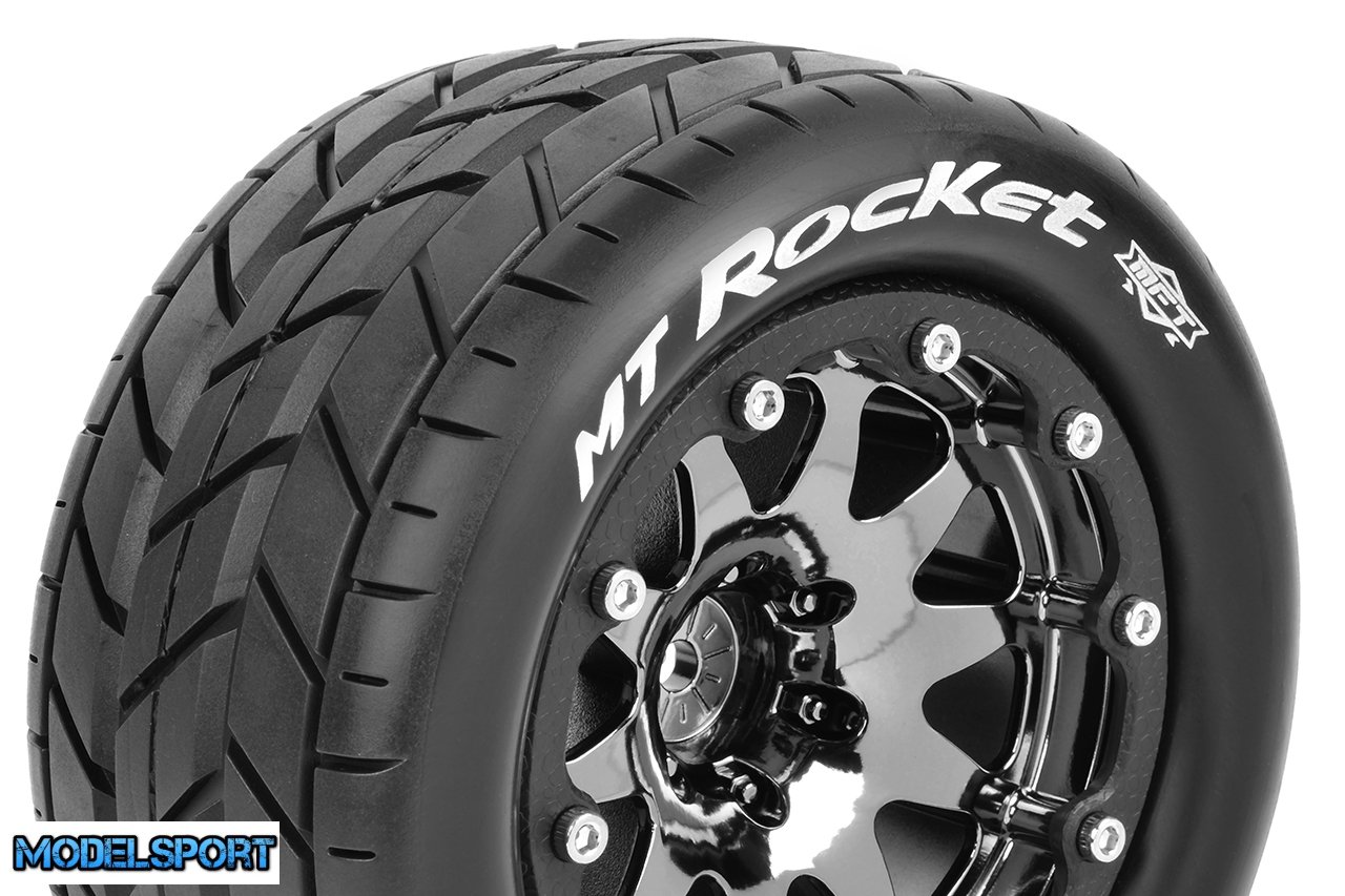 Louise RC - MFT - MT-ROCKET - 1-10 Monster Truck Tire Set - Mounted - Sport - Black Chrome 2.8 Bead-Lock Wheels - 1/2-Offset - Hex 12mm - L-T3307SBCH